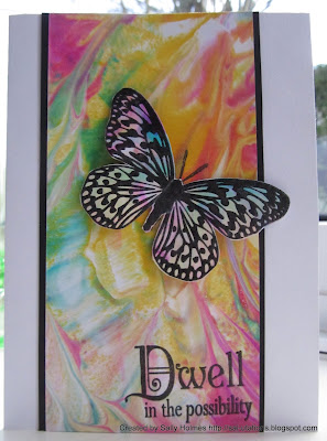 "In our mid month posts we are going to showcase for you a technique that we have tried out. I saw some wonderful samples from Visible Image, our sponsors this month, using shaving foam marbling technique and I knew I had to have a go. I have marbled with shaving foam before using a variety of inks and dyes, including re-inkers and food colouring, but not half as effectively as the samples I saw. They had used Dylusions sprayed onto the foam. The colours were amazing!
